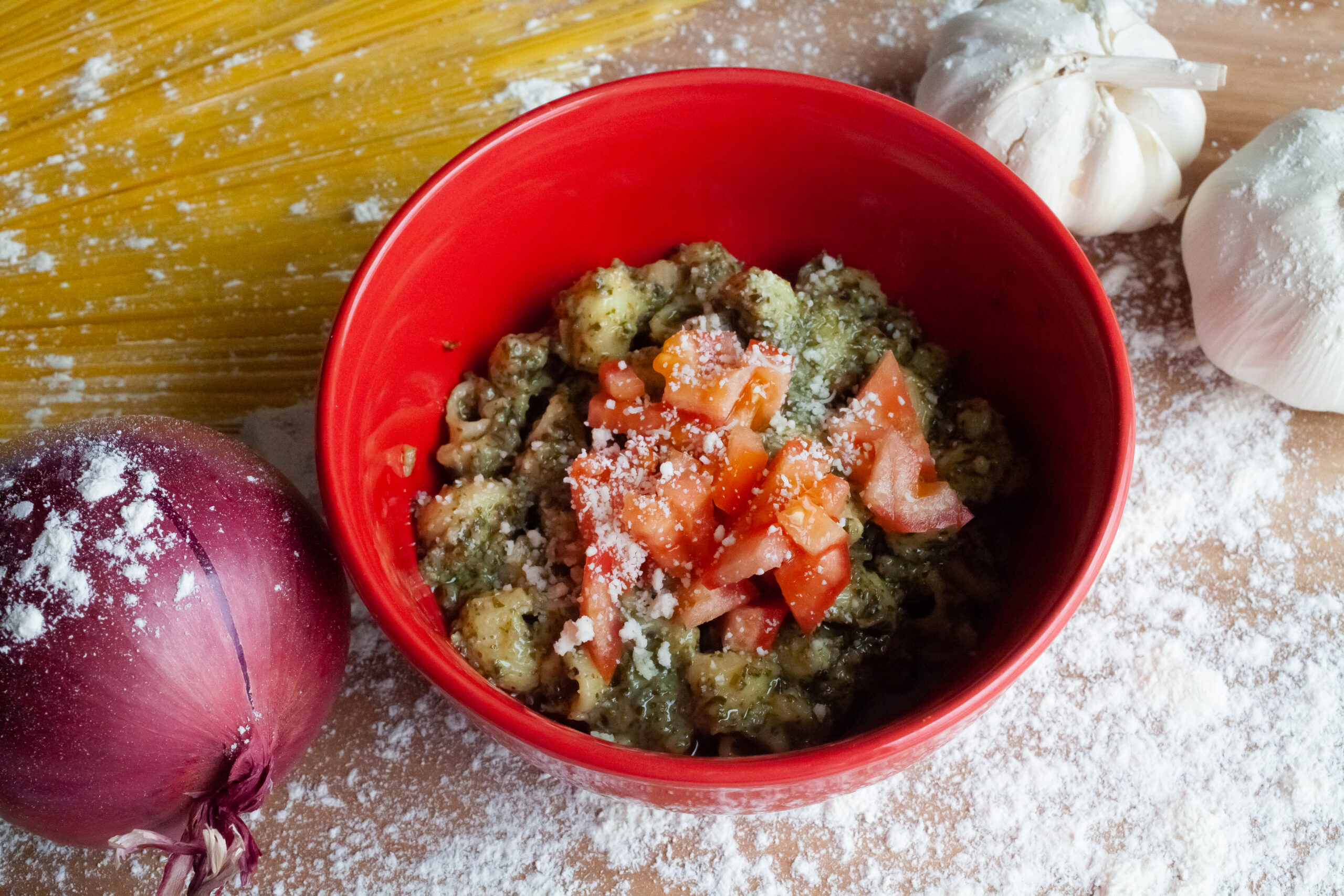 Classic vodka sauce with basil and a touch of cream.