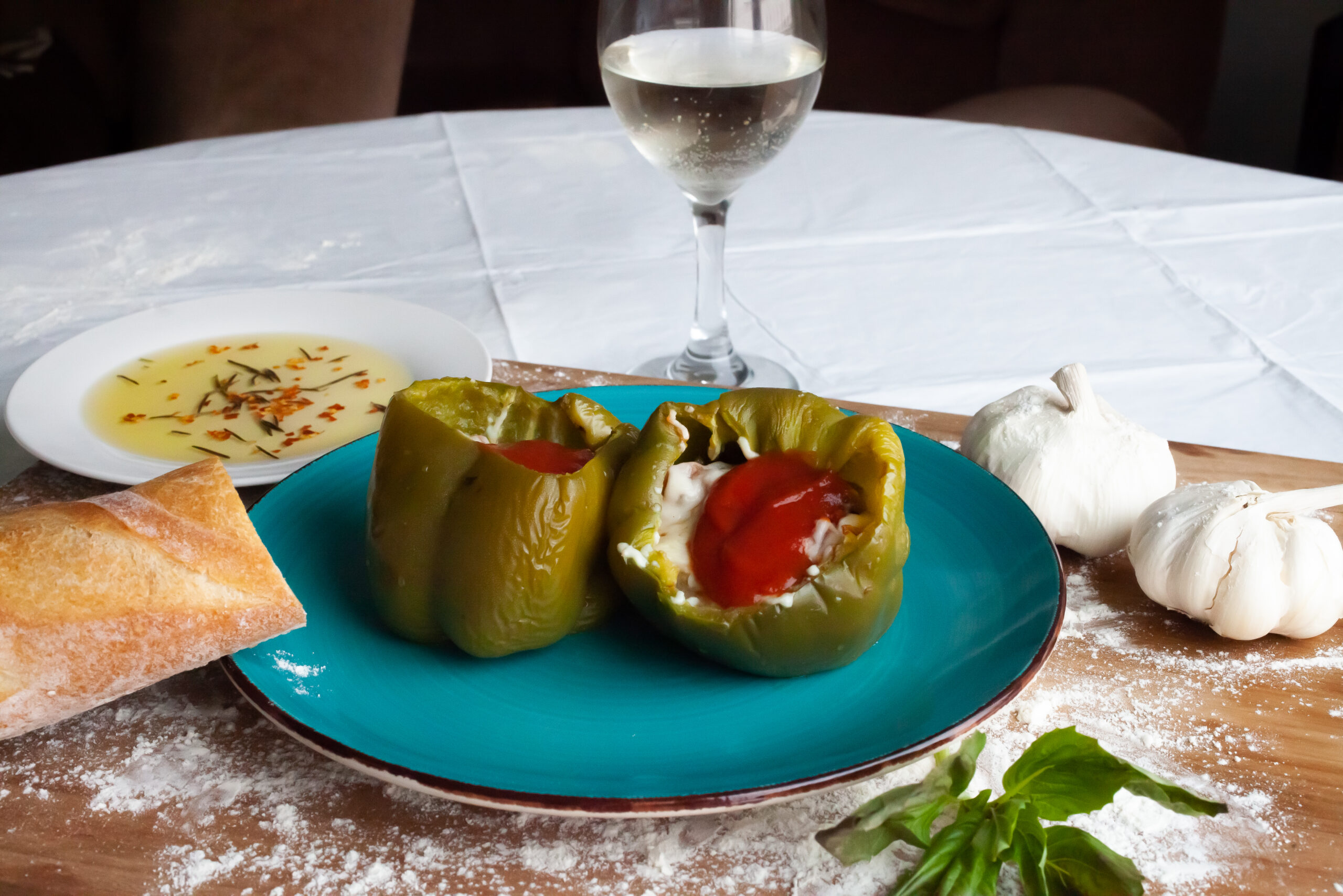 Green Bell Peppers stuffed and baked with sautéed Mushrooms, Mozzarella, Pecorino Romano Cheese and Basil. Available Vegetarian or with locally sourced Beef, Pork, Veal. Your choice of 2 or 4 Peppers.